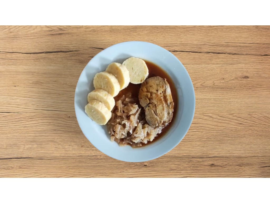Pečená vepřová krkovička, kysané zelí,, bramborové knedlíky